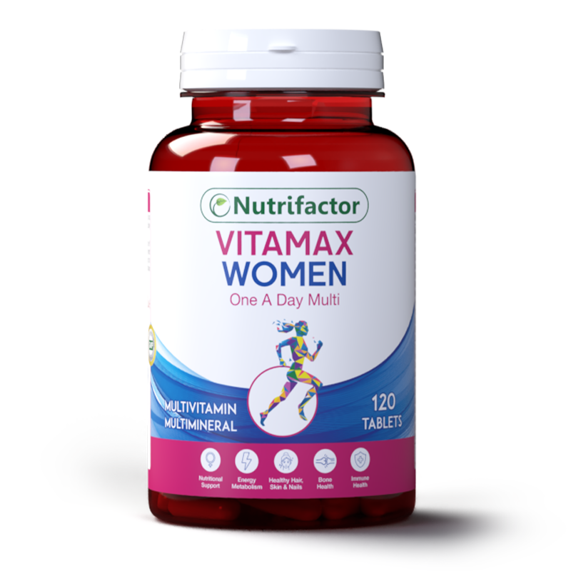 • Nutrifactor’s Vitamax Women is a unique multivitamin and multimineral formula providing over 23 important vitamins and minerals to fulfill the nutritional requirements of women. It helps to boost energy, support immunity, heart, brain and eye health. It also helps to improve metabolism and muscle functions.